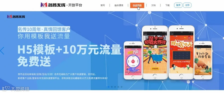 入口:进入名传无线开放平台(网址 http://yun.mchuan.com/)→ 选择“快速营销”