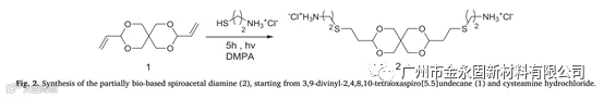 摘 要 本研究制备并表征了含有主体由生物丙三醇和生物乙醇衍生螺环基团的,完全和部分生物基聚酰胺。 利用硫醇-烯链接化学合成了可再生的二元胺,合成了一系列含有柔性硫醚和刚性螺环结构聚酰胺。研究和评价了两种不同的聚合反应途径。聚酰胺盐的聚合是最有前途的方法,因此盐聚合被应用于脂肪族和芳香族二元酸合成聚酰胺。 随后,通过Maldi-ToF分析确定了聚合物的结构,并对聚合物的热性能和力学性能进行了研究,得到了Tg在24-80℃之间,以及模量为1.0-1.5GPa的延展性材料。半晶态聚酰胺和非晶态聚酰胺均具有热稳定性,都适合于热加工。最后,对含有螺环的聚酰胺进行了降解研究,结果表明,在水溶液pH值为3或更高时,该聚合物是稳定的。