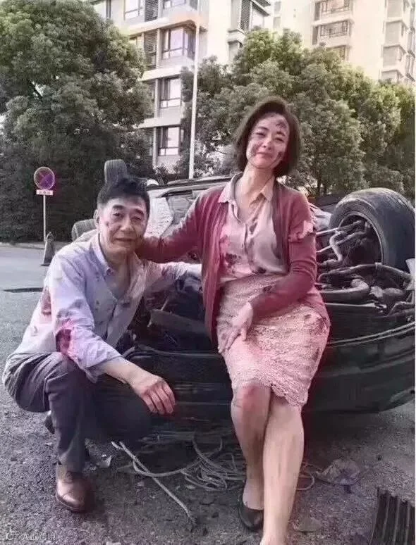 事件起因:一对夫妻开车回家时,妻子不小心将车开上消防栓导致翻车!两口子都受了伤,惊魂未定、确定双方都只是皮肉有恙无大碍后,丈夫提出和妻子合个影立此存照!他觉得和老婆一生经历的所有糗事都值得记录下来留作纪念……