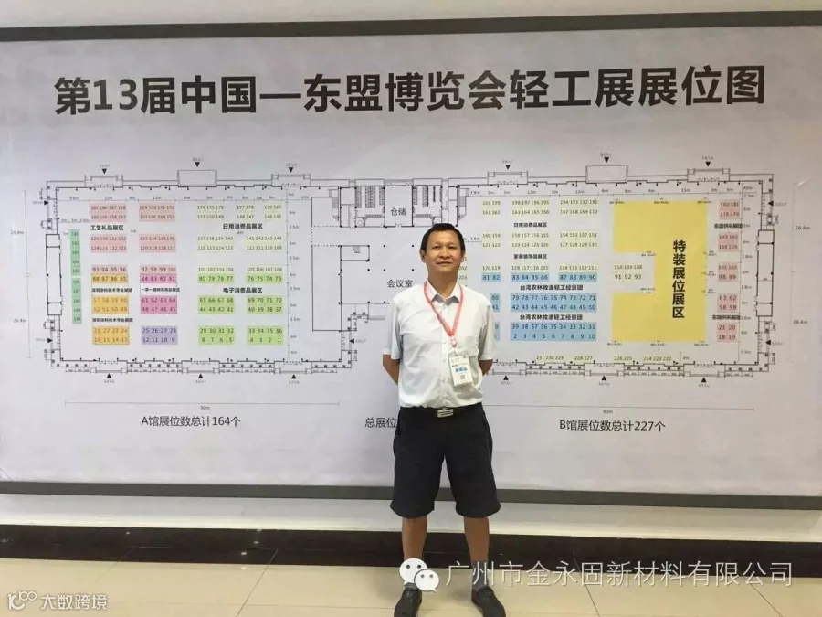 2016年9月11-14日,中国环氧树脂应用技术学会理事单位广州市金永固新材料有限公司在胡红兵总经理的带领下,参加了在南宁举办的第13届中国-东盟博览会轻工展,展位号A23,所展产品大双-小双瓷砖美缝剂3160得到了参观观众的一致好评,纷纷询问南宁经销点在哪里。也有多个商家有意愿成为代理或者经销。图为胡红兵总经理