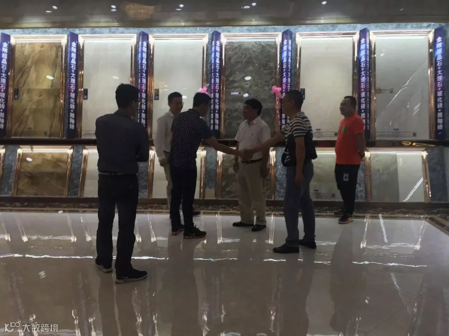 ▲在董事总经理冯礼港的带领下参观了华夏陶瓷总部营销中心