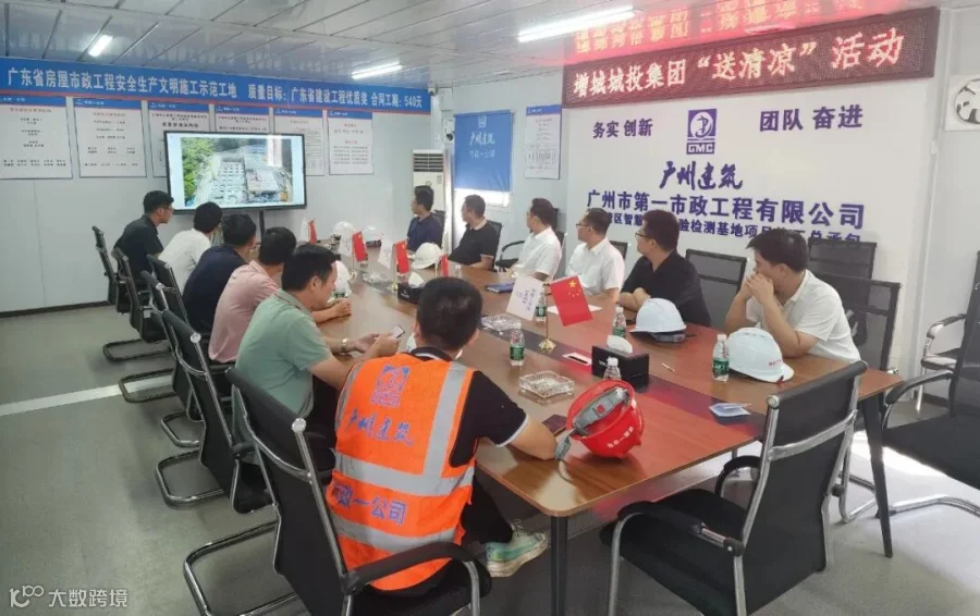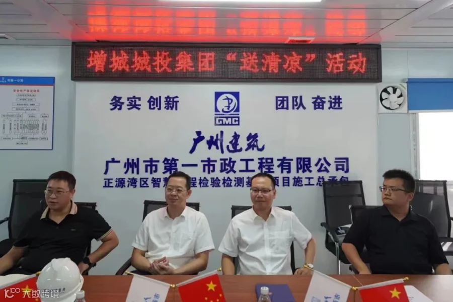 烈日炎炎,酷暑难当。随着气温不断攀升,持续的高温天气给坚守在一线的建设者们带来了严峻考验。为切实做好夏季安全生产和防暑降温工作,保障一线工作人员身心健康,8月6日,广州增城城投集团副总工程师王乾霖带队走访慰问重点项目建设现场,深入产业公司正源湾区智慧工程检验检测基地项目开展送清凉战高温慰问活动,产业公司董事长周桂清、副总经理于海建及施工单位相关人员向奋战在高温一线的建设者说感谢、送清凉、保安全、鼓干劲。
