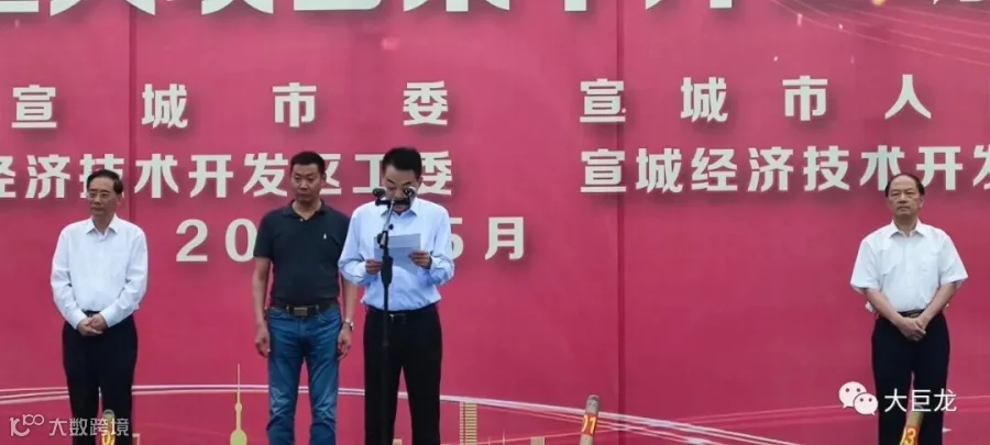 宣城市委副书记、市长孔晓宏讲话并宣布项目开工,参加活动的人员还有宣城市级领导孔晓宏、于静波、王普、刘家和;市政府秘书长及有关副秘书长;市发改委、市经信局主要负责人;宣城经开区党工委、管委会领导班子成员,内设二级机构和驻经开区单位主要负责人和项目单位大巨龙集团董事长李德荣、总经理李鑫、副总经理李灏等集团高管代表,以及大巨龙集团战略合作单位嘉宾。