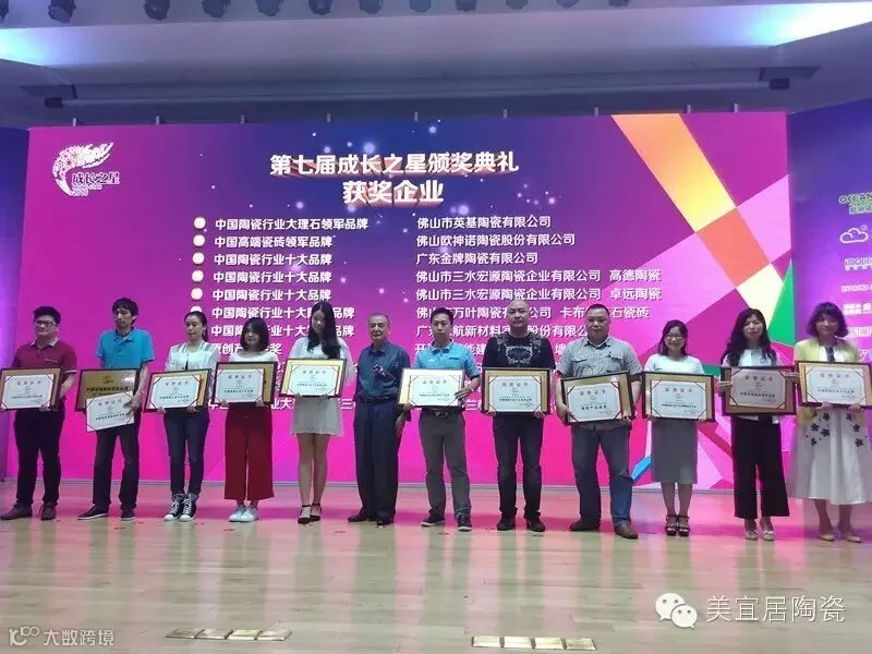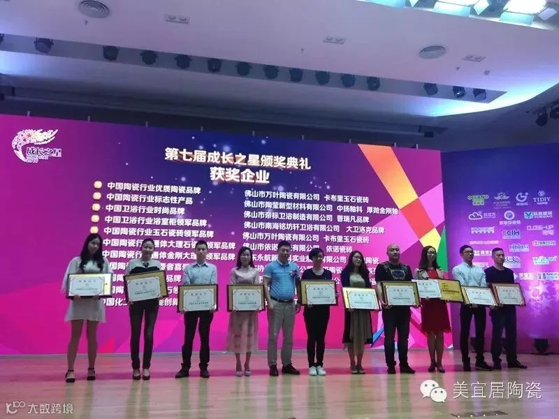 2016年4月24日,由中国陶瓷工业协会营销分会及南庄陶瓷产品促进会联合主办的第七届成长之星颁奖典礼在中国陶瓷总部基地掀开帷幕,在这场陶业盛宴上,永航企业凭借自身的产品特点及品牌发展优势,一举囊括“中国陶瓷行业通体金刚大理石领军品牌”和“中国陶瓷行业十大知名品牌”两项品牌殊荣。
