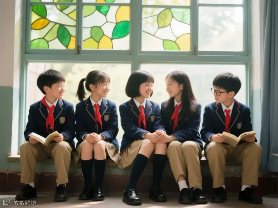 穿蓝白校服的同学们抱着课本穿过走廊,衣摆掠过扶栏时,