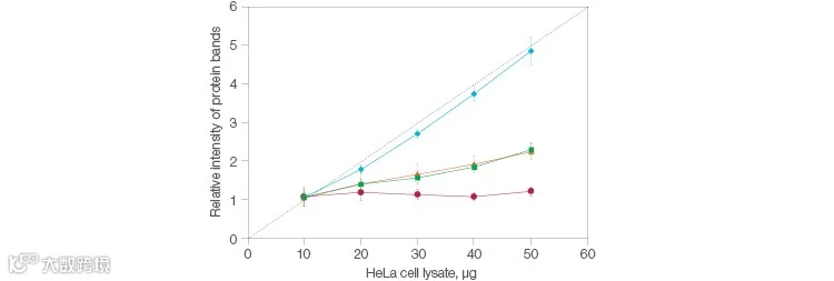但是,使用单一看家蛋白内参存在局限性。必须分别建立阳性和阴性对照,测试不同样品中一致的蛋白表达水平,并且需要在一系列上样量范围内确认线性信号响应。所有这些都是必要的,但耗时耗力。