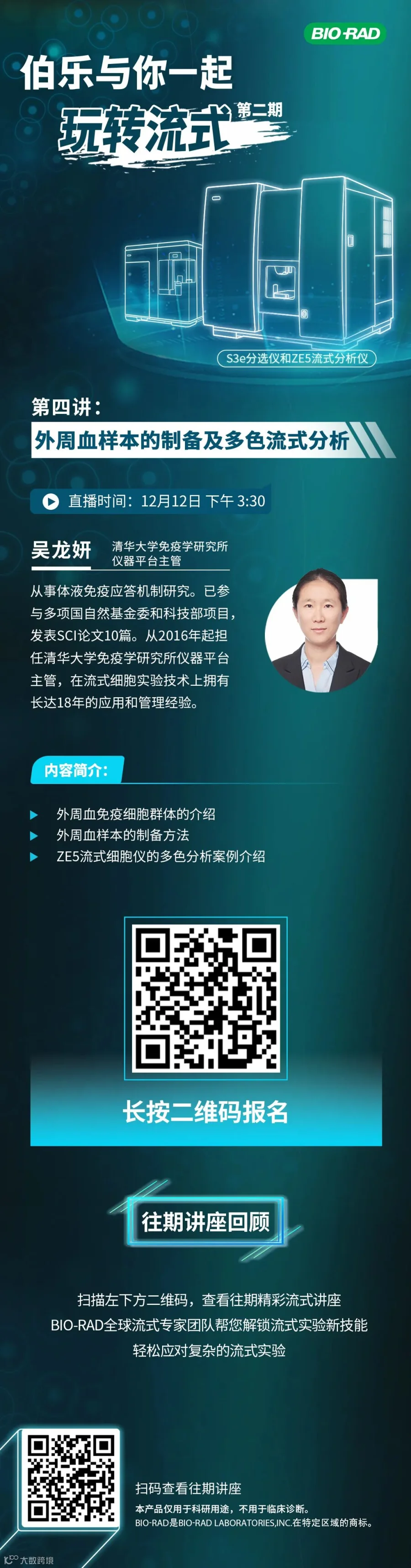 导读:1)外周血免疫细胞群体的介绍 2)外周血样本的制备方法 3)ZE5流式细胞仪的多色分析案例介绍