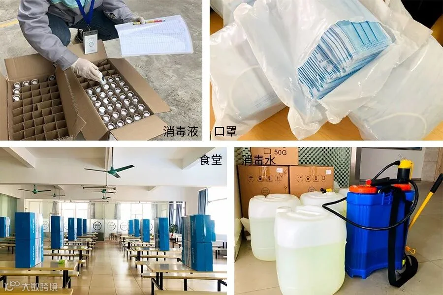 (现场派发口罩、消毒液等防护物资和开工红包)