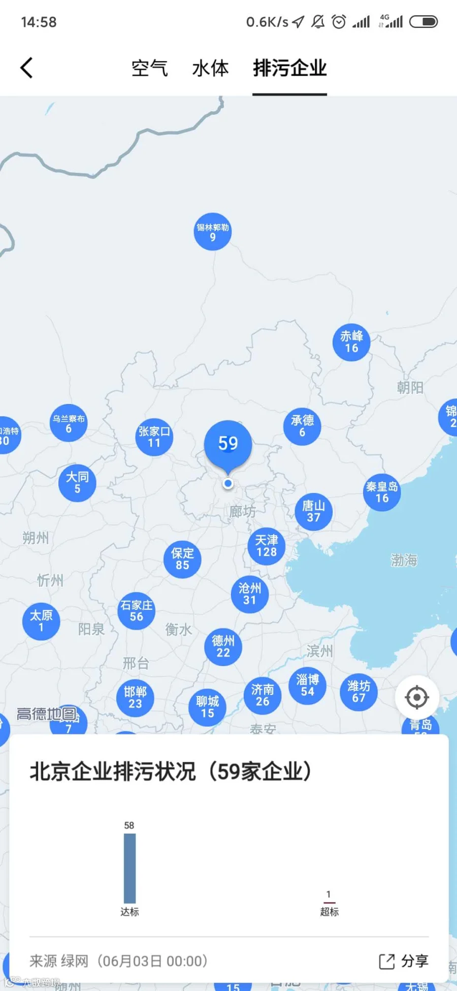 2018年6月5日世界环境日,环境保护部宣传教育中心联合阿里巴巴公益基金会、高德地图共同推出了环境地图。环境地图的所有信息均来源于绿网环境保护服务中心(NGO)收集的各级环保部门公开监测数据。环境地图的出现让很多人都可以了解到所在城市的空气、水质以及排污企业等环境信息。让我们的生活指标可视化,也让我们可以明确的了解到周边的生活环境。