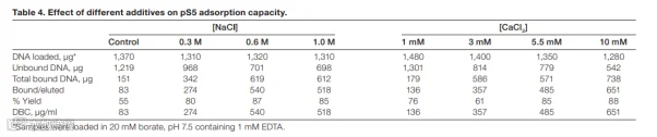 在结合液中添加添加剂可以帮助提高结合效率,一般添加 NaCl 或 Ca2Cl。0.6M 的 NaCl 可以明显的提高产量,Ca2Cl 在 5.5mM 的时候效率最高,但是过多的添加会形成浑浊的沉淀。