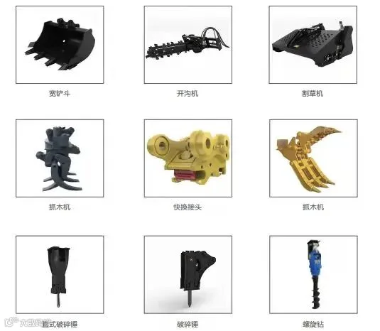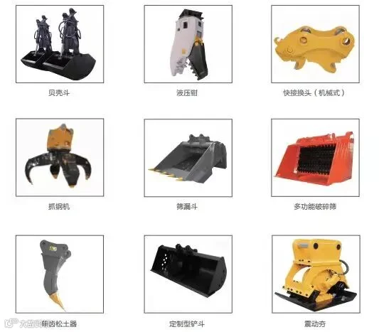 1.本公司产品分为液压属具与机械属具,适用于3-80吨位挖掘机车型。