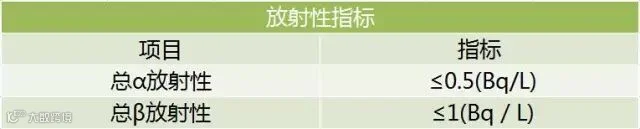 放射性指标规定数值只是作为一个参考水平。放射性指标超过如果超过下面表格中规定的数值时,必须进行核素分析和评价,从而来决定能否饮用。
