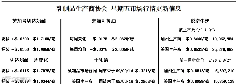 加州4a牛奶$13.38/100磅 加州4b牛奶$15.69/100磅