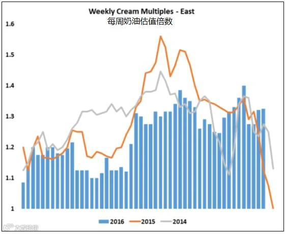节假日时期通常不能给乳制品生产商带来什么好的消息,因为12月下旬牛奶的销量并不理想。学生们都在家,喝的牛奶与他们在学校时相比减少了。意味着牛奶的生产设备停机的时间更长了。零售商们将他们的目光从节假日食品如蛋奶酒、鲜奶油转向为新的一年提供更加健康的食品。但今年感觉不一样。乳制品市场新闻报道像往常一样,“西部和中部地区奶油更多地正在转变为可用于生产,而二级奶则在不断地减少。”而在东部地区,“液体奶油市场比市场参与者推测的还要活跃,贮备量已经有所收紧。”奶油的估值倍数本周在东部地区高企,这是一个非常不平凡的状况。加拿大对于奶油的需求依旧非常大,国内市场对于各种乳脂的需求依然强劲。