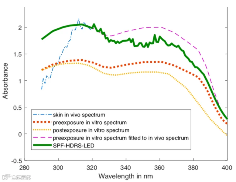 欧洲一团队系统性地探索并证实了基于多波长LED光源的混合漫反射光谱(HDRS)方案的可行性。该研究将多波长LED阵列(覆盖290-400nm)与HDRS原理结合,并用于同时测定SPF和UVA-PF。