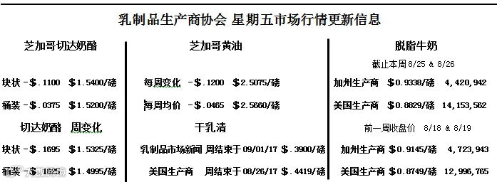 美国农业部公布了八月份三级奶的价格为16.7美元/英担,与七月相比涨幅1.12美元,但与去年同期相比下跌34美分。加州4b牛奶价格为16.26美元/英担,与七月相比上涨97美分,与去年八月相比下跌8美分。八月份四级奶的价格为16.61美元/英担,比上月上涨1美分,与去年同期相比涨幅近2美元。加州4a牛奶的价格为16.68美元/英担,比七月上涨27美分,与去年同期相比涨幅明显,上涨2.69美元。