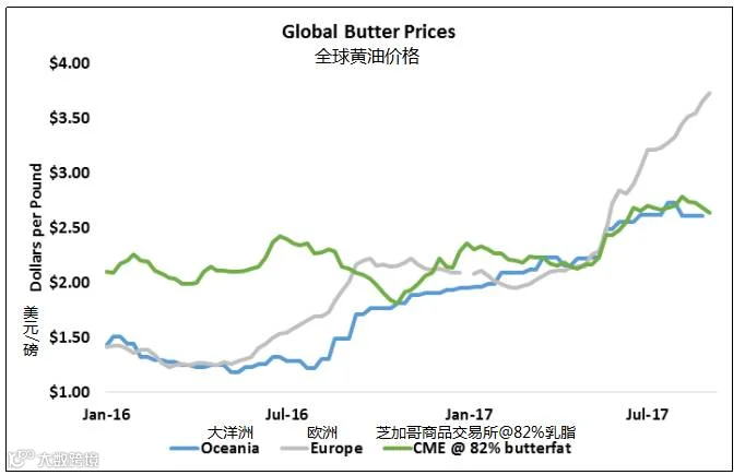 出口需求报告喜忧参半,但如果黄油生产商有意愿把黄油中盐和脂肪的含量达到国际标准,美国肯定能在全球市场上竞争。在欧洲,黄油价格继续飙升。