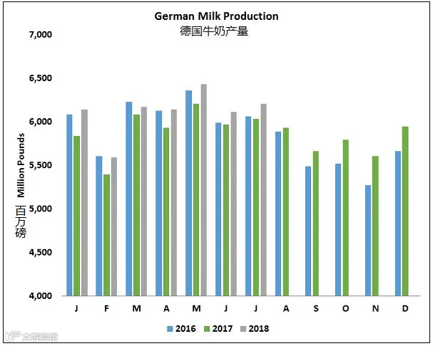 到目前为止,欧洲类似的撤退性战略只有实现部分了。欧洲乳制品生产商也同样面临着恶劣的天气和农场利润微薄的问题。但欧洲的工资水平并不像美国的那么低,因此低的利润率很可能不会对欧洲的乳制品群造成太大的影响。至于天气,它的影响是好坏参半的。爱尔兰牛奶产量在七月大幅下降,比去年同期下跌3.7%。尽管经历了历史性的酷热天气,但德国牛奶产量超过2017年7月的2.8%。英国是欧洲第三大产奶国,7月份产量增长1.5%,排名第五大的波兰同比增长1.7%。全球市场会以同样的速度增长,这并不像过去几年中在美国和欧洲盛行的扩张那样强劲。但如果全球乳品市场能同时在大西洋两岸出现放缓,复苏的基础将更加稳固。
