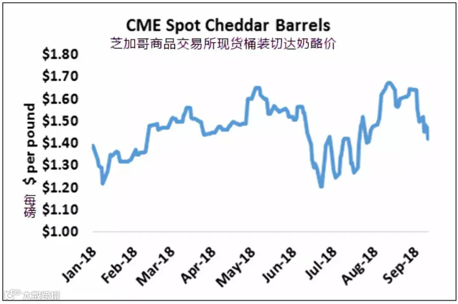 凉爽的夜间天气使得美国西部地区(受炎热天气影响)的情况得到缓解。然而,中西部地区和东北部的奶牛继续受到炎热潮湿的夏季天气的影响,甚至其中有部分地区处在由佛罗伦萨飓风带来的暴雨和潮湿的环境中。乳制品市场新闻报道称,在东部地区“牛奶的产量仍然低于农场….由于一些生产部门没有收到足够的牛奶,整个地区的生产日程表各不相同。本周东南部的牛奶产量下降。”大湖区牛奶产量的回升也十分缓慢。“威斯康星州的工厂经理指出,收益率仍处于或刚刚走出今年的最低点。此外,整个中西部的奶牛场正在以惊人的速度关闭。