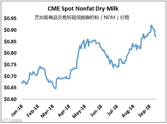 突破90美分奶粉价格只是短暂的。芝加哥商品交易所(CME)现货脱脂奶粉(NDM)本周下跌3.5美分,收于87.5美分。墨西哥对美国奶粉的需求依然强劲,但随着价格攀升,销售额增长幅度下滑。这有助于解释上周高价下跌的原因。