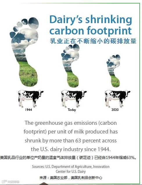 总体而言,自二战以来加州的乳制品农场生产每一杯牛奶能够减少碳排放量超过63%,这是其他地区从未达到的成就。