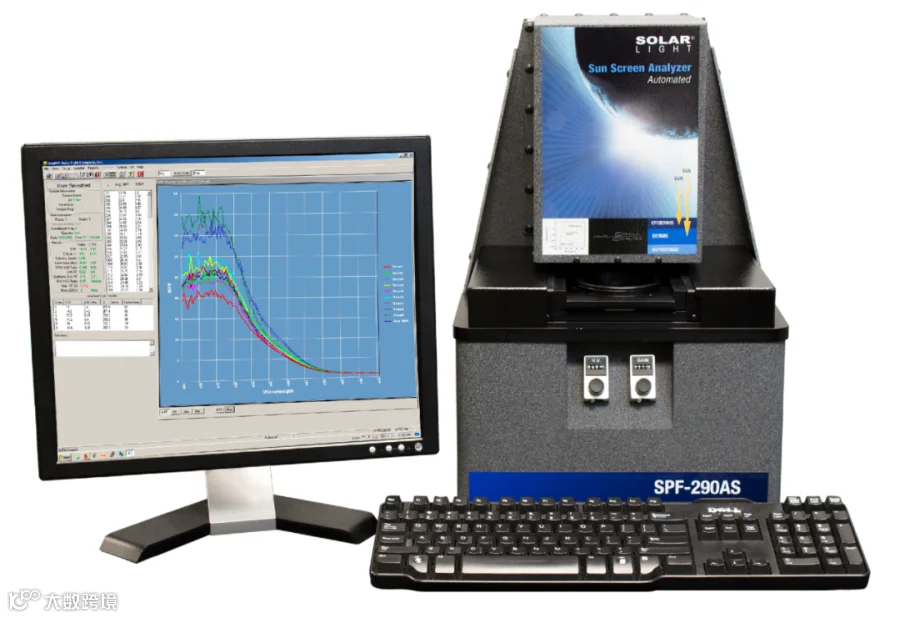 在体外测试中,SOLAR LIGHT的SPF-290AS紫外透过率/防晒指数分析仪,可用于防晒产品的功效测试。该仪器通过测量样品在紫外线波段的透射率来评估防晒效果。