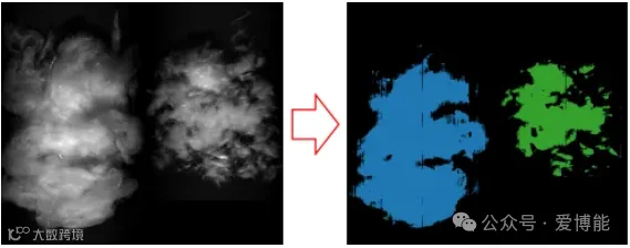 基于上述光谱特征,研究团队开发了羽绒材质分析算法,对样品进行真假判定。结果显示,绿色标记的为真鸭绒,蓝色标记的为仿绒制品。由此可以明确,右侧样品为真鸭绒,左侧样品为仿绒制品。