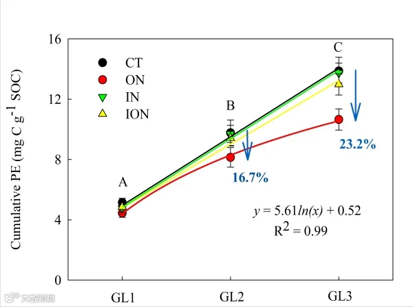 图:氮沉降形态及外源碳输入量对激发效应的影响。