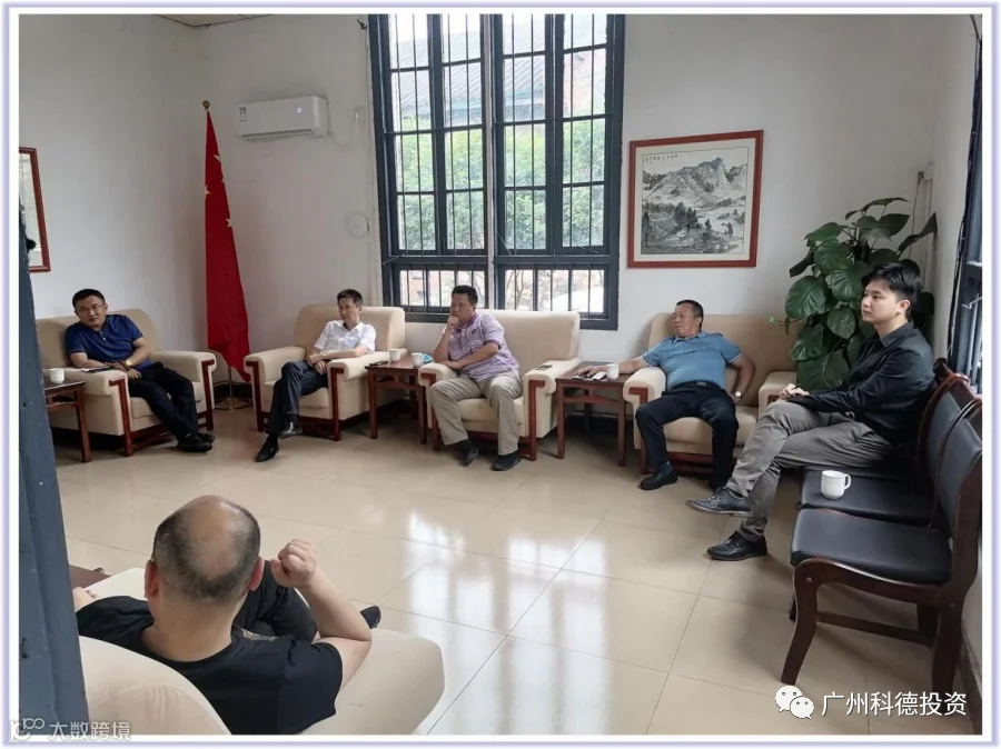 6月1日下午,东香江潮文化传媒有限公司董事长严益民,湖南省交通勘测设计院院长黄泽斌到访红旗茶厂,广德园党工委委员、管委会副主任彭军,科德公司副总经理彭杰及科创小镇公司相关人员接待,双方就红旗茶厂规划问题进行洽谈。