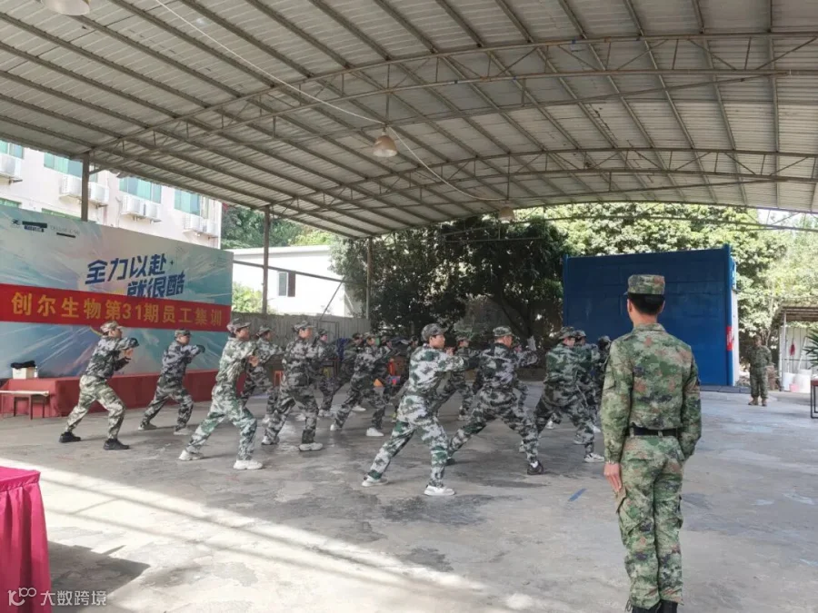训练场上,学员们一丝不苟、专注调整,在反复训练中不断精进。军体拳训练时,出拳迅捷、势如松柏,动作刚健有力,呐喊声响彻全场,尽显创尔人的刚毅本色;队列行进中,身姿挺拔、步伐整齐,每一步落地都凝聚着专注与默契,书写着团结的力量。