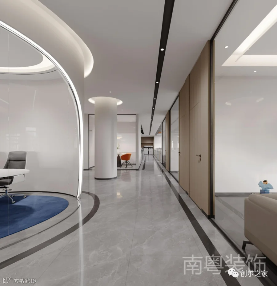 会议室科幻感十足,会议室的墙壁采用高科技材料构建且配备雾化功能,当会议开始后,只需在会议室内使用智能控制系统操作,会议室的墙壁便可随指令逐渐雾化,使外部无法透视会议室内部的讨论内容,确保会议的私密性。