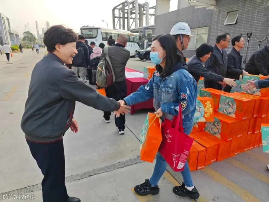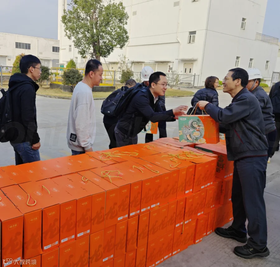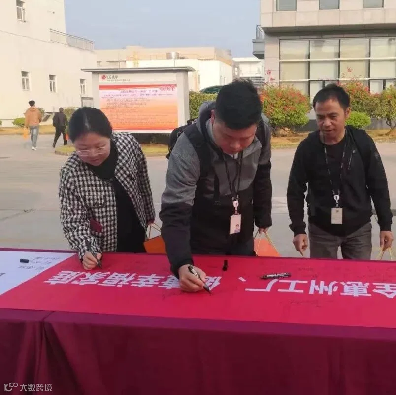 早上7点55分,明媚阳光洒满乐金化学(惠州)工厂,公司管理层在周垠廷总经理的带领下在1号门门口迎接陆续上班的员工,与员工亲切握手,道一声“新年快乐”,并送上新年礼品。员工们在印有环境安全训的横幅上郑重签下名字,承诺新的一年,严格遵守公司环境健康安全规定。