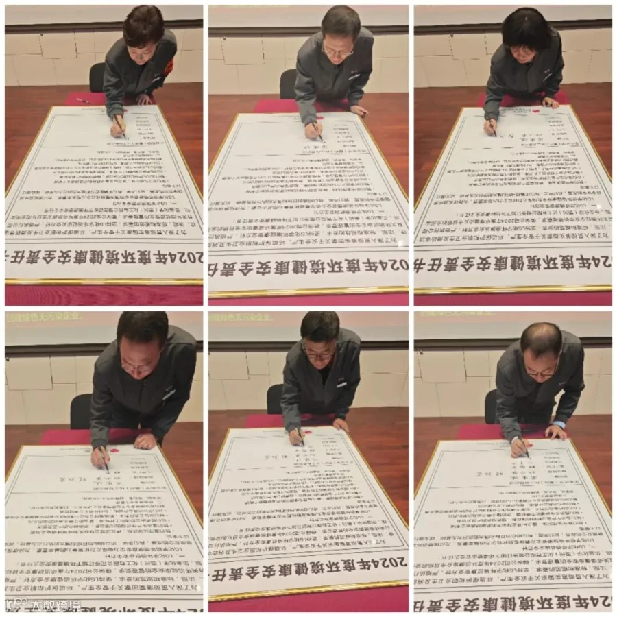 仪式上,公司管理层与Team长签署2024年度环境健康安全责任书,更好地落实主体责任。Team长们承诺,2024年继续做实环境健康安全工作。