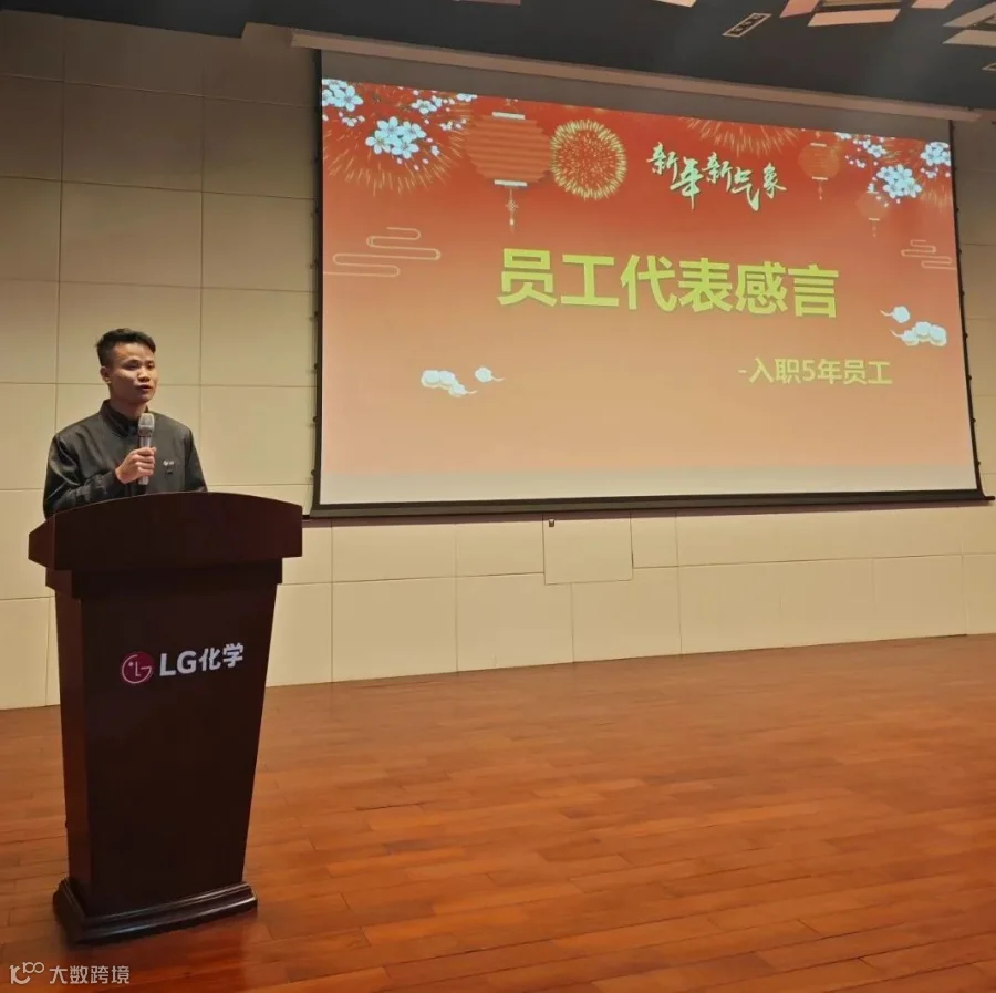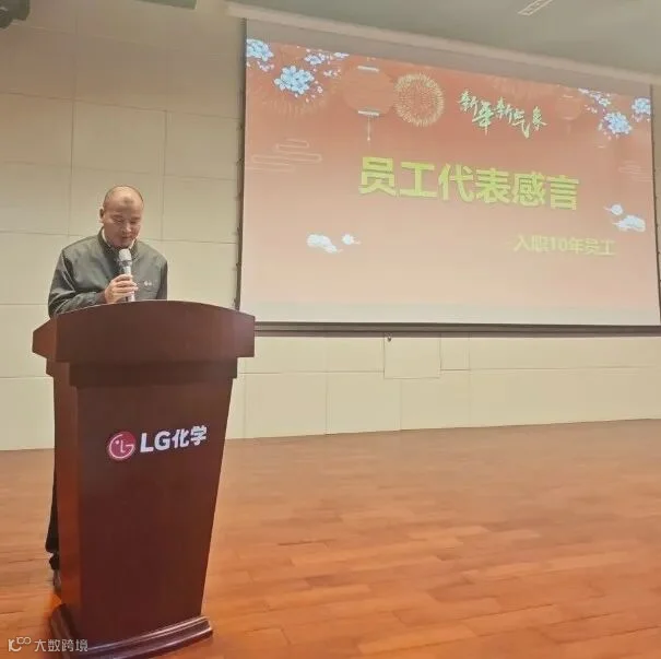 9点,公司在多功能厅举行2024年始务式活动。仪式上,播放了2023年公司在安全生产、营业销售、经营管理、三大核心价值等方面工作成果,以及重要事件和精彩时刻。观看了LG集团具光谟会长新年致辞视频, 汲取前进的力量,很受鼓舞。公司总经理周垠廷做新年致辞,向一年来辛勤工作的全体员工表示感谢,并致以新年的祝福。周总表示,2023年,公司严格遵守环境安全基本规则,实现安全生产;成功开发了4种高收益新产品,扩大了17个直销(经销)客户,主动挖掘150个成本节约项目,提高了成本竞争力,中国地区统合销售和统合采购的组织变革下,奠定了扎实的差别化基础。这些成果基于我们全体员工的工作热情、贡献和努力,各位家人的理解和支持,与我们共同成长的客户、外协单位及相关政府部门的信任和帮助。2024年,我们将充分发挥“安全稳定生产、高品质产品、专业技术服务”核心竞争优势,继续开展核心价值课题(新产品开发、扩大客户、强化成本竞争力),用我们公司的DNA,创造丰硕成果。