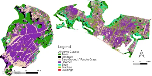 Heathland 1(左)和Heathland 2(右)的机载图像的最终分类