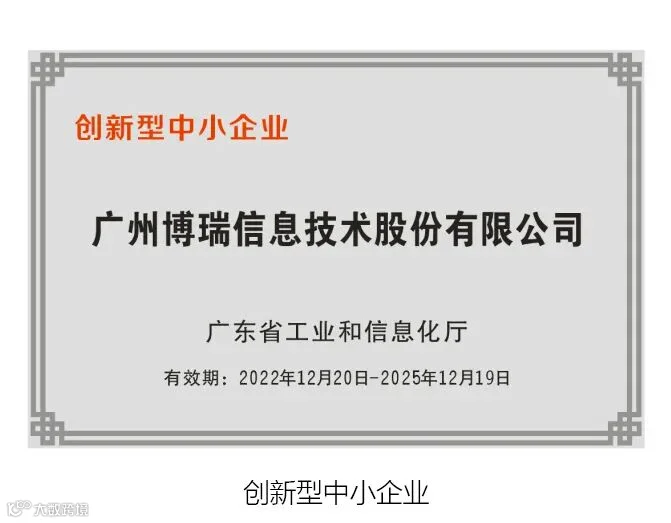 祝贺我司(广州博瑞信息技术股份有限公司)通过广东省专精特新中小企业、创新型中小企业认定。