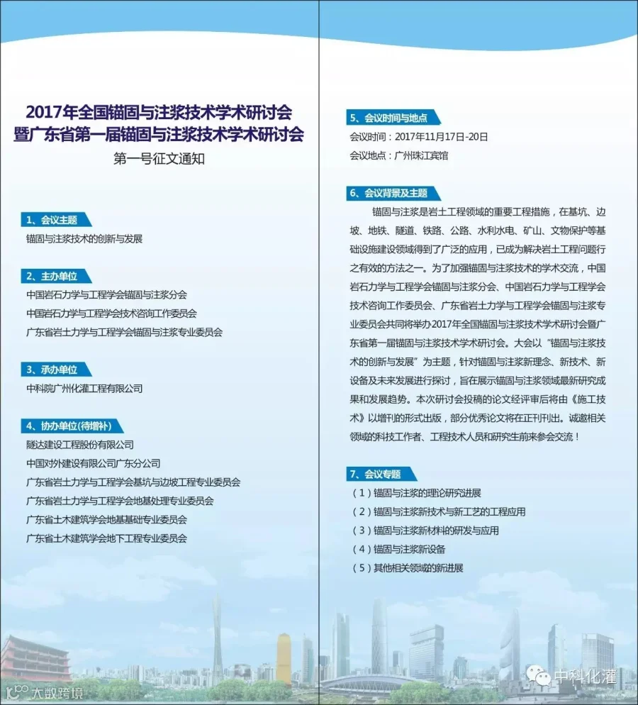 2017年全国锚固与注浆技术学术研讨会暨广东省第一届锚固与注浆技术学术研讨会第一号征文通知