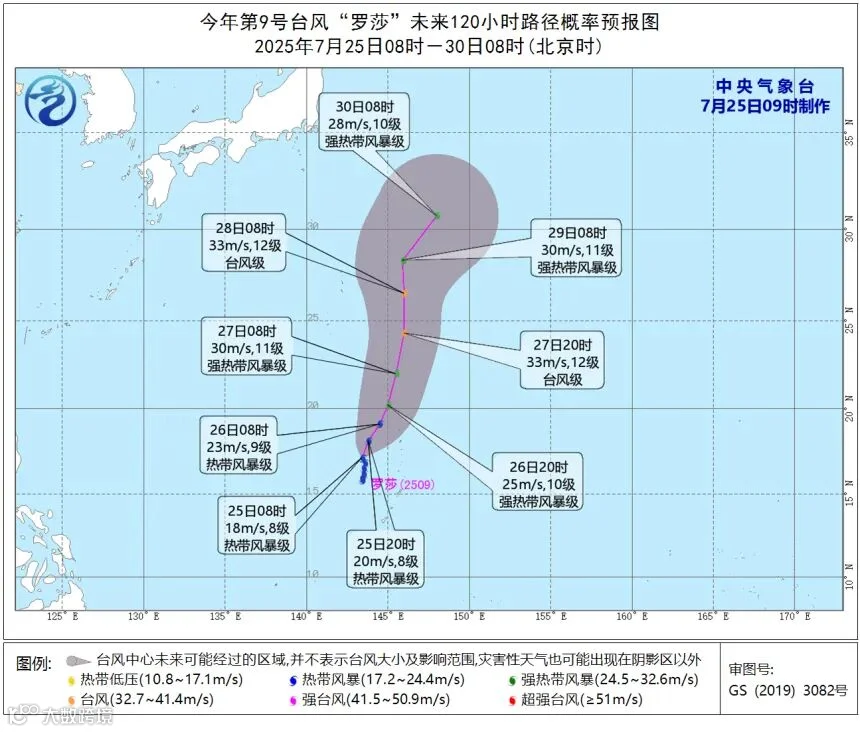 今年第9号台风“罗莎”(热带风暴级)的中心今天(25日)早晨8时距离关岛塞班西北方向约325公里,就是北纬17.1度、东经143.4度, 中心附近最大风力有8级(18米/秒),中心最低气压为998百帕,七级风圈半径160-260公里。