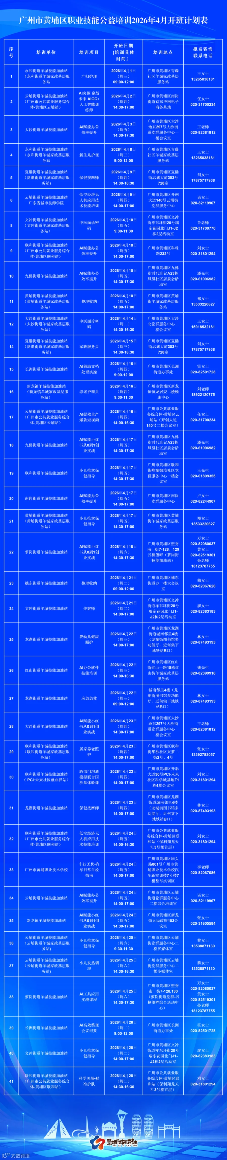 ▲上下滑动,查看2026年黄埔区各镇街职业技能培训联系人通讯录