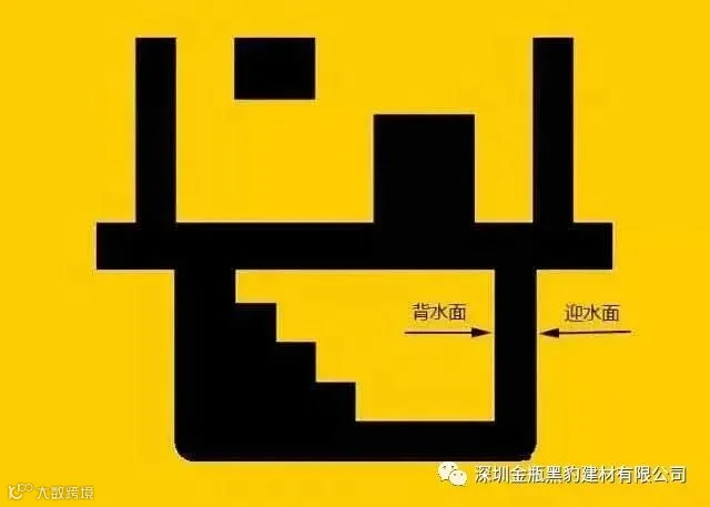 通俗讲,建筑结构接触水的一面为迎水面,反之为背水面。当然,迎水面、背水面的概念并非绝对的,它是相对水源方向而言。例如图1所示,一个在土地上开挖的水池,如果我们以水池周围的地下水为参照,则此时在水池墙体与泥土接触的那一面为迎水面,水池内侧则为背水面;如果我们以水池内的水为参照物,则水池墙体内侧为迎水面,水池墙体与泥土接触的那一面为背水面。