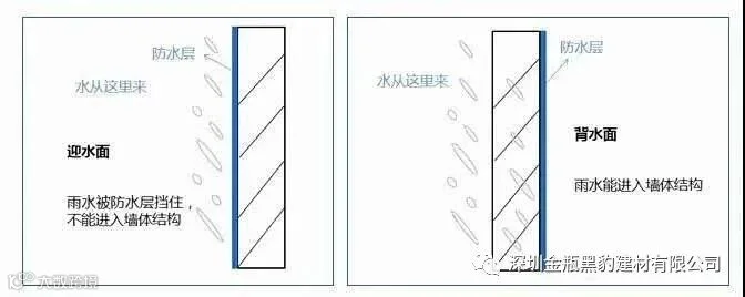 像防水卷材,就不适合背水面防水,因为防水卷材与基层粘接力差,用在迎水面时防水性能优异,但在长期背水压力下,渗漏水会慢慢将其顶开。