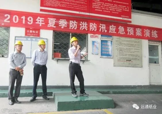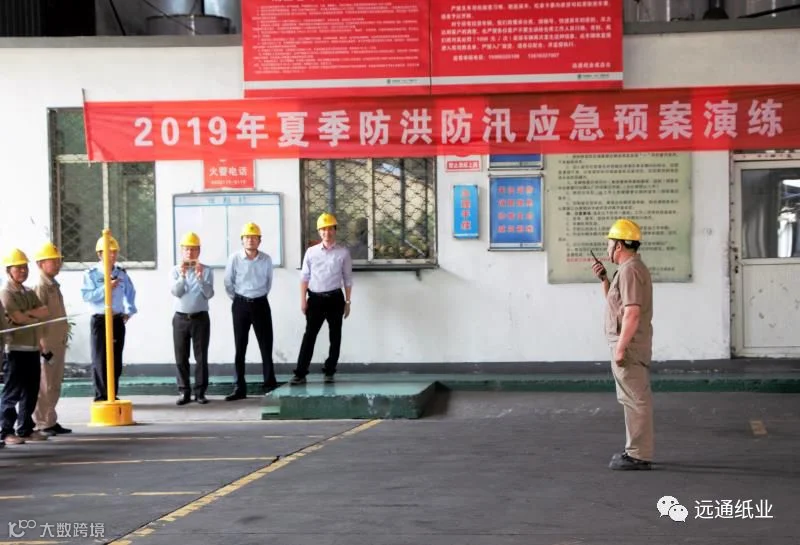 远通纸业为确保安全度汛,最大限度地减少自然灾害对人员的伤害和财产的损失,确保救援工作高效、有序的进行,于2019年6月,顺利开展防洪防汛应急演练活动。本次演习活动有管理人员、员工代表约200人至现场参与及观摩。
