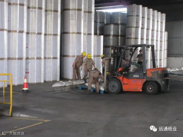 成品库当班人员使用叉车,及时将低洼处成品纸转移到安全区域。