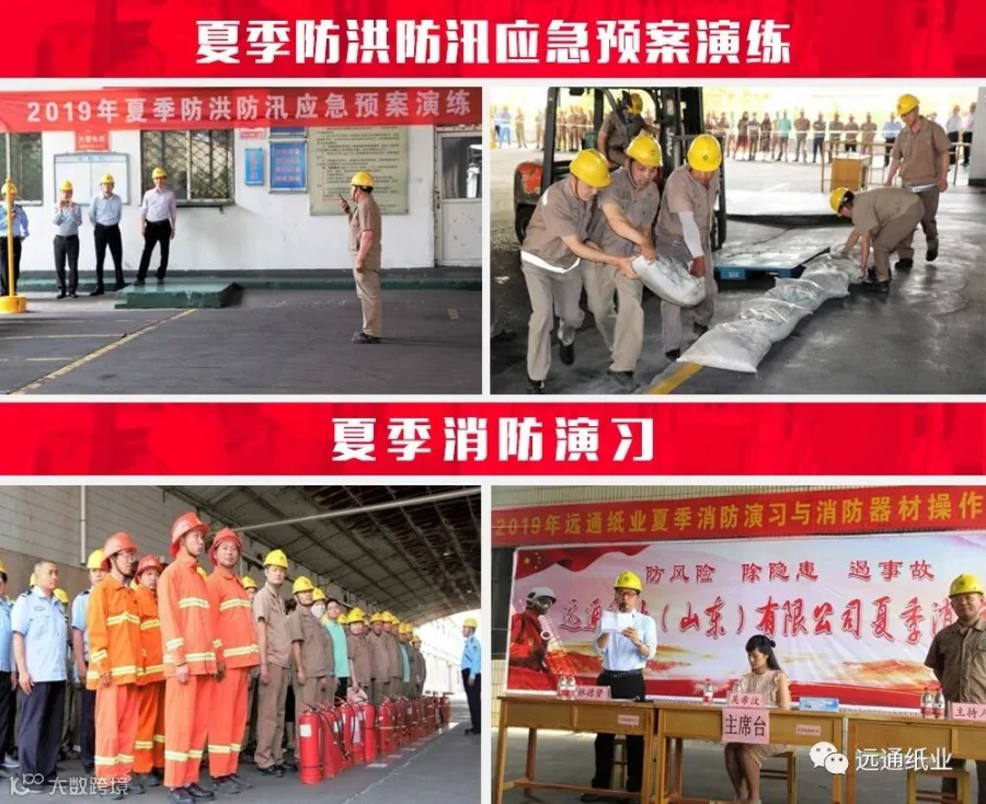 在各层领导的高效领导下,远通纸业始终坚持“以人为本,安全第一、预防为主、综合治理”的安全生产方针,多年来有计划的开展各项安全管理工作,特别是生产安全事故和自然灾害事故应急管理工作,组织专业人员成立应急预案编制小组,修订生产安全事故应急预案,包括1项综合预案,6项专项预案,9项现场处置方案,并根据不同季节、不同部门的实际情况,组织应急预案演练活动,确保发生事故时队伍能随时拉得出、冲得上、打得赢。