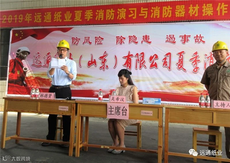为提高员工安全防范意识,掌握对突发火灾事故的应对及逃生技能,确保员工生命安全及公司财产安全,远通纸业于2019年6月19日下午2:00点,以国家第18个安全生产月活动为契机,组织副主任以上管理人员和部分员工代表开展了2019年度夏季消防演习活动。