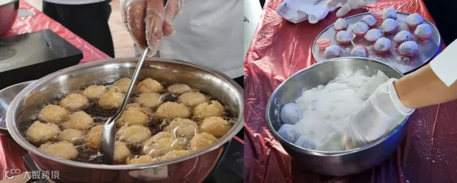 实操中,卢师傅现场传授“笑口枣”、“紫气东来糯米糍”两款经典广式点心的“绝活”要点。村民们纷纷上台“拜师学艺”,在大师手把手的指导下,有模有样地揉面、搓圆、下锅煮。大师的专业的水准与学员生涩手法“交相辉映”形成鲜明对比,现场欢笑不断、掌声连连。上台体验的赖阿姨笑着说:“看着简单,做起来才知道,大师的手艺是几十年练出来的真功夫!”