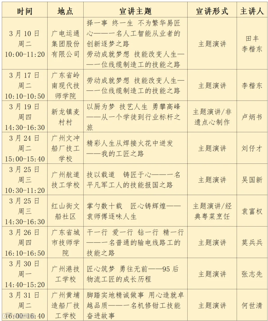 而在需求端,区人社局则联动区内企业、院校、镇街,针对企业职工、技工学子、社区居民的差异化技能需求,悉数完成了所有场次主讲人与宣讲点的精准适配。接下来,区人社局将会同相关协办单位,以3月份为重点,陆续安排“靠埔匠心说”主讲人到各技工院校、工业社区、创业典型村等重点区域,通过讲述成长故事、传授美食秘方、展示非遗技艺等宣讲与传播方式,让广大倾听者在感召式教育、沉浸式体验中感受技能魅力。