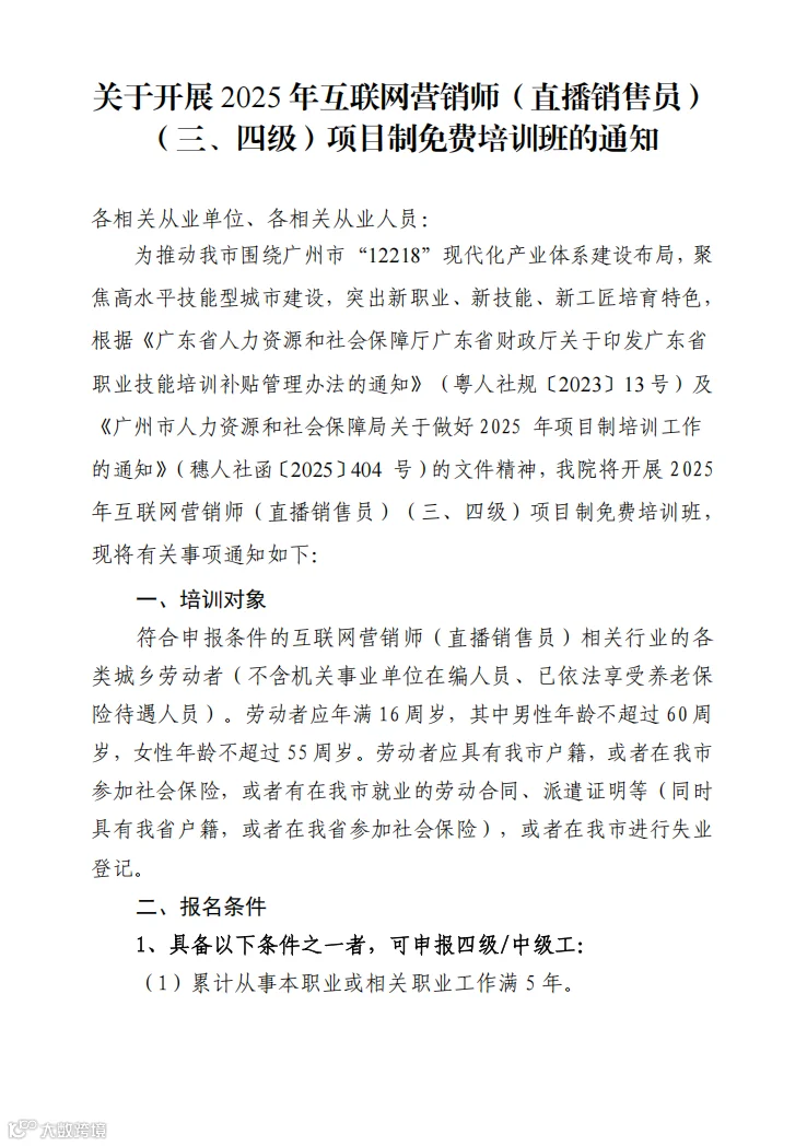 互联网营销师(直播销售员)(三、四级)项目制培训招生通知