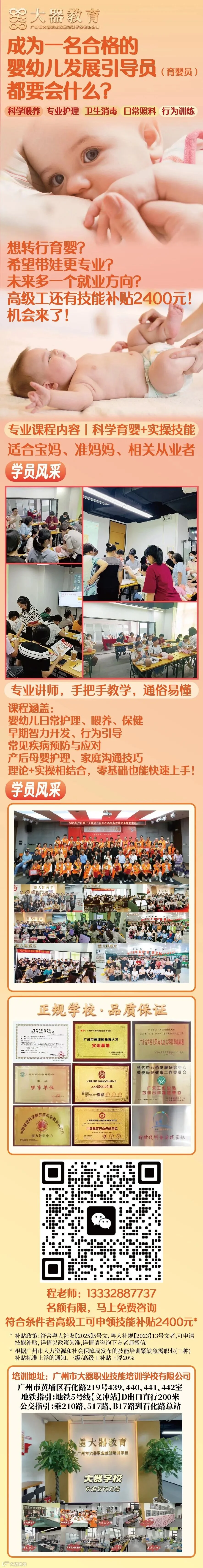 大器学校招生简章:科学育婴有妙招,手把手教,心贴心学