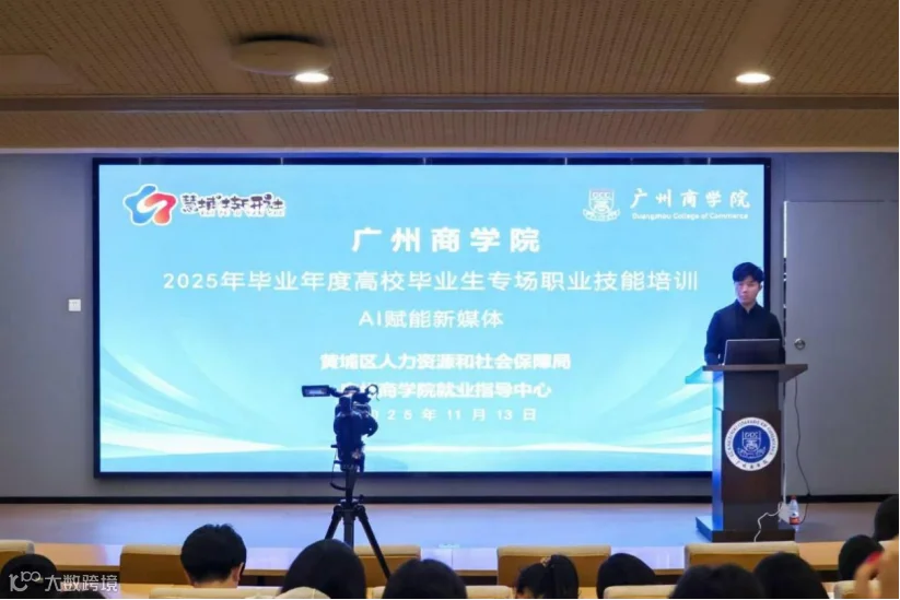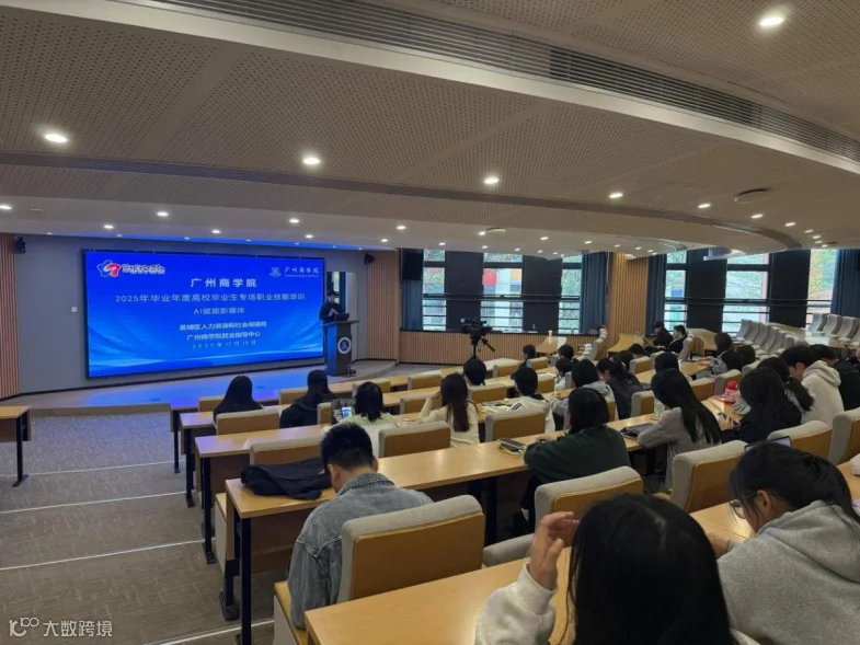 为精准对接新媒体行业发展需求,切实提升学生就业创业核心竞争力,11月13日下午,黄埔区人社局携手广州商学院,成功举办“AI 赋能新媒体”高校毕业生专场职业技能培训。活动特别邀请梁颖杰老师主讲,以实用技能传授为核心,提升同学们在新媒体领域的就业竞争力。